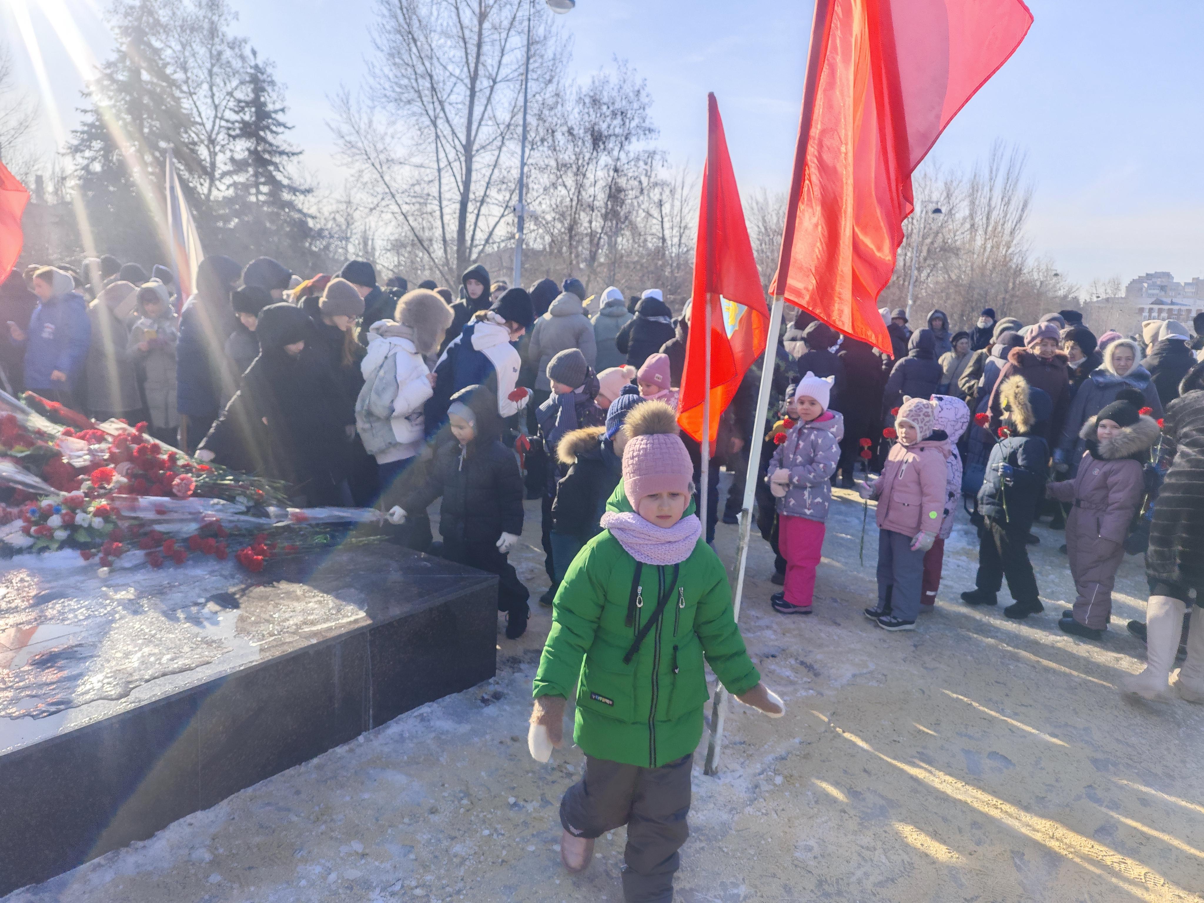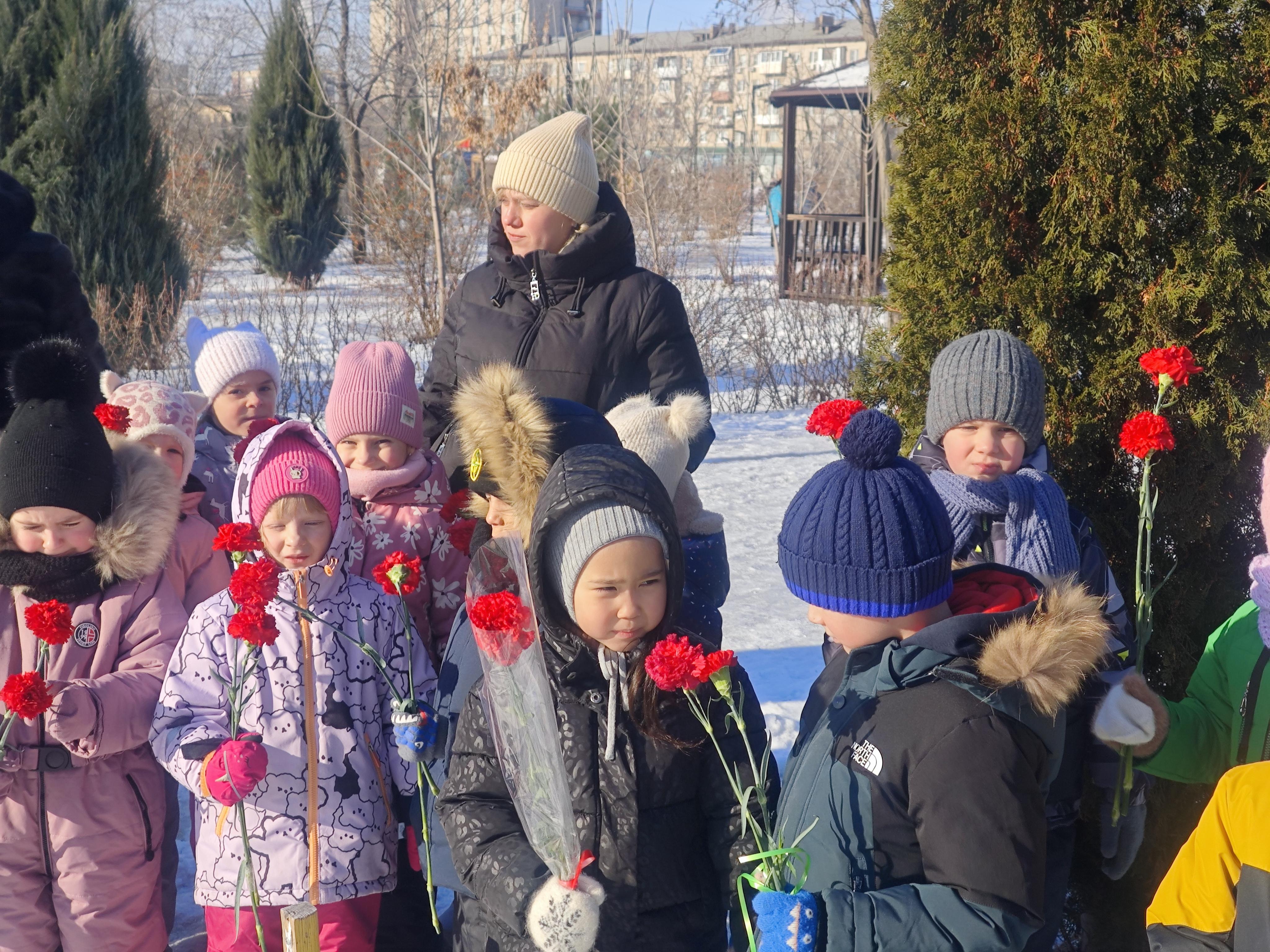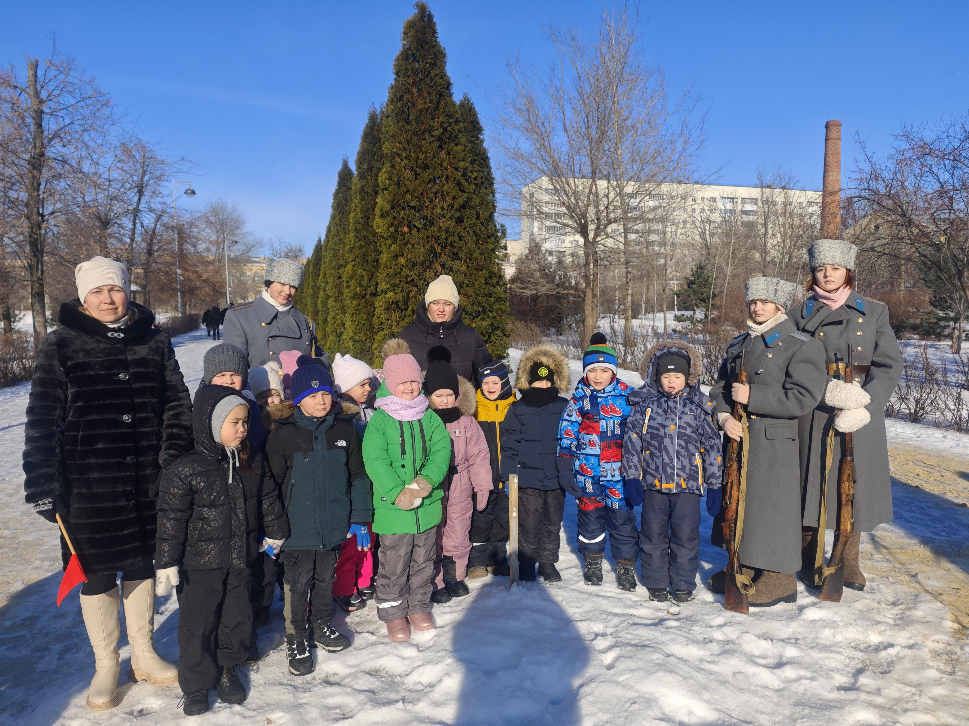 2 февраля воспитанники группы № 10 возложили цветы к Братской могиле воинов 62 и 64-й армий, побывав на торжественном мероприятии "Цветы на снегу"